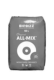 Biobizz All-Mix is a heavily pre-fertilised soil mixture designed to emulate rich outdoor soil with a full micro active ecosystem. This 50L bag contains a complete blend of the finest organic ingredients including peat moss, perlite, and Pre-Mix (a blend of organic fertilisers including bat guano, bone meal, and rock dust).